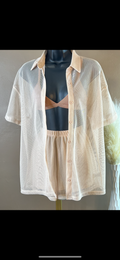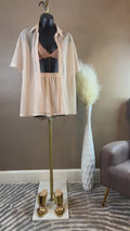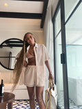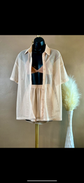 2- Piece Cream Metallic Knit Short Set