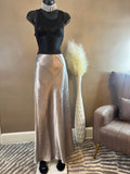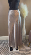 It's the Bianca skirt that we love! The metallic silver skirt can be with a tee, blouse or over swimwear.